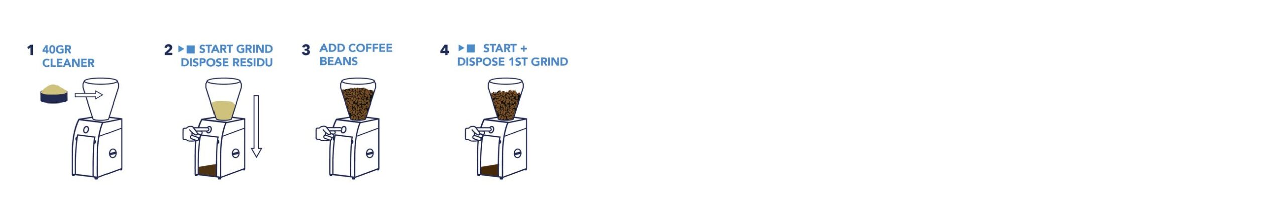 - Verwenden Sie etwa 40 Gramm Mahlwerkreiniger.